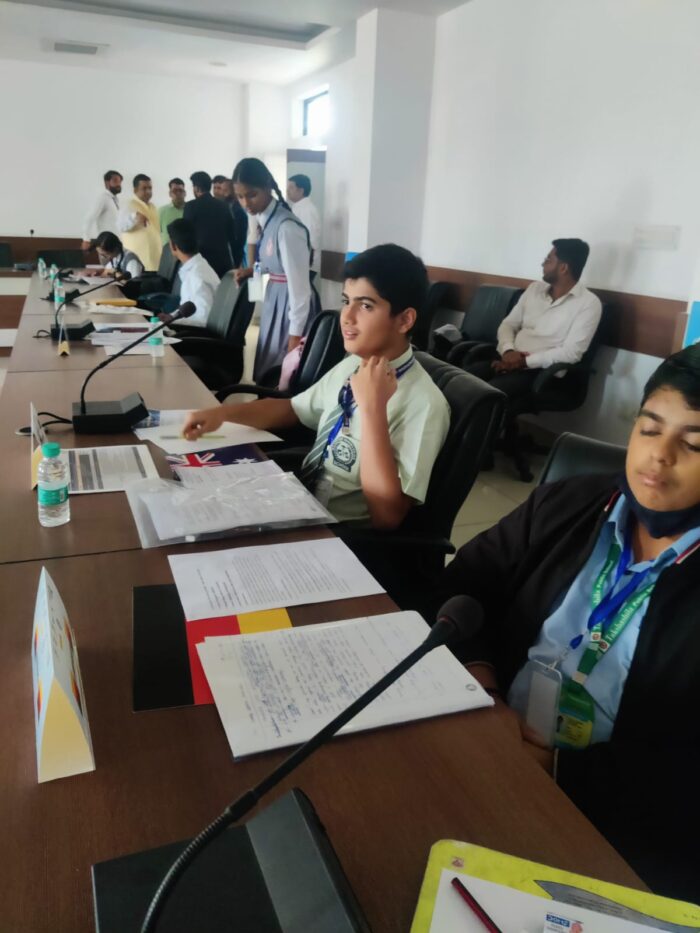 Students Samar Jeet Singh and Garvit Pal represented the institution under the guidance of Teacher Vijay Pal Singh and delivered outstanding performances. Samar Jeet Singh received the Best Delegate Award, while Garvit Pal was honored with the Best Bill Presentation Award.
